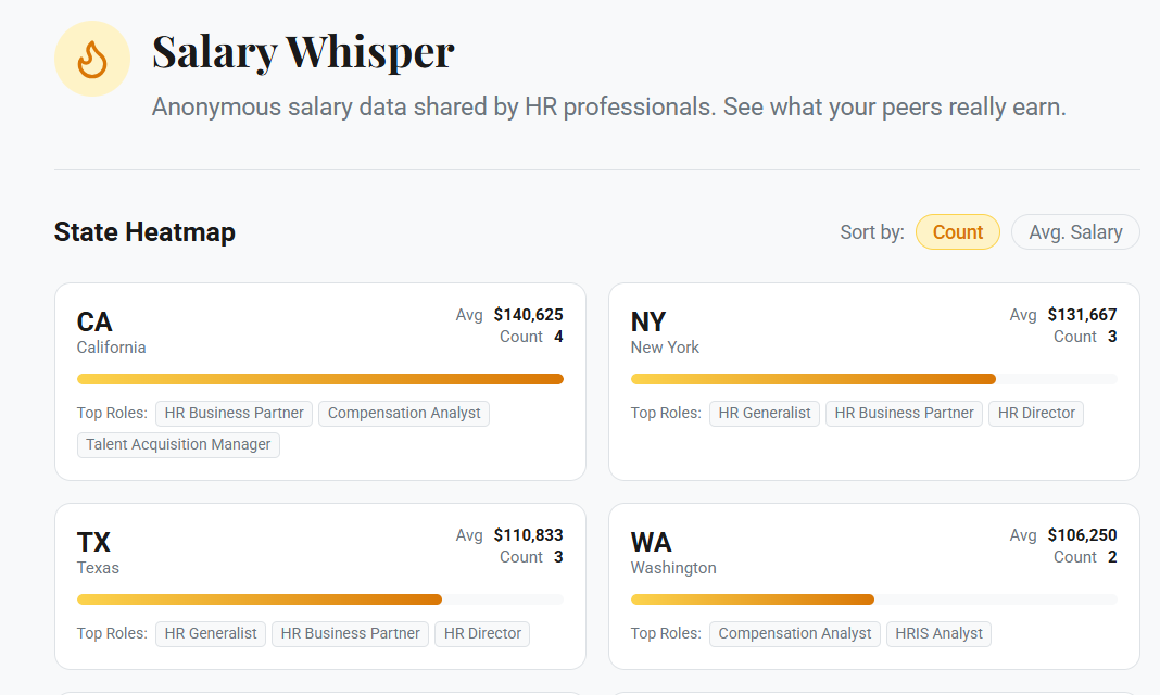 - Salary Whisper — state-by-state heatmap