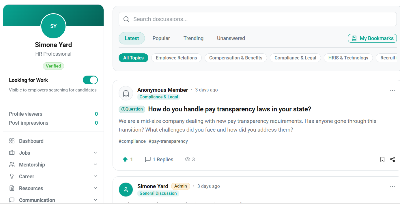 Engage in meaningful discussions with verified HR professionals across the United States. Share knowledge, ask questions, and work through challenges together.