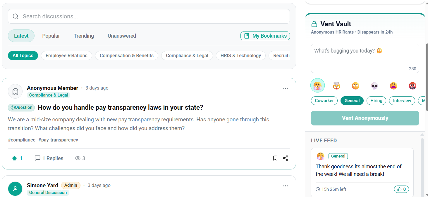 - Vent Vault — anonymous space for HR professionals